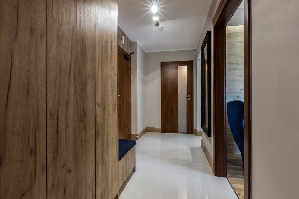 Główne atuty mieszkania, to przede wszystkim wysoki standard przy wykorzystaniu naturalnego drewna i kamienia, oraz funkcjonalność dzięki licznym przeszkleniom oferującym naturalne światło i kontakt z naturą.